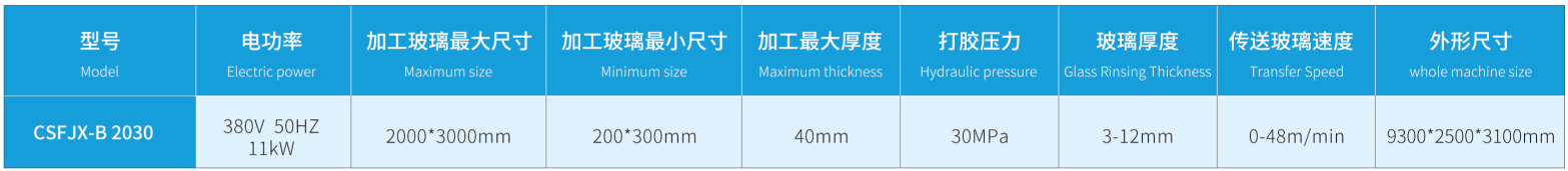 人機友好界面,操作方便;邊部涂膠充實無氣泡,角部飽滿,無需人工修整;世界有名的伺服控制系統(tǒng).性能穩(wěn)定;準確的同步帶傳輸系統(tǒng),確保玻璃運行平穩(wěn)無污染;獨特的膠量自動報警裝置